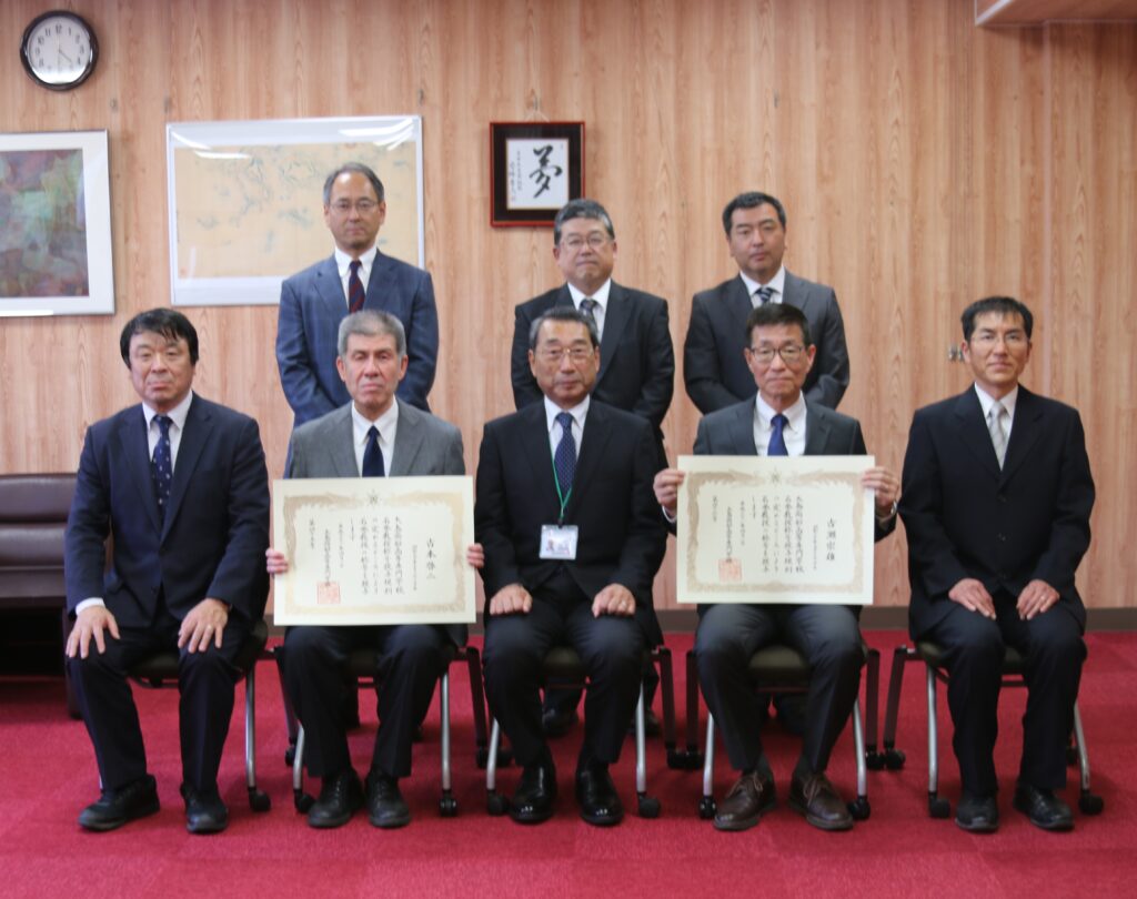 名誉教授の称号は、本校の充実発展に特に功労のあった方に授与しており、このたび、古本啓二氏と古瀬宗雄氏が授与されました。