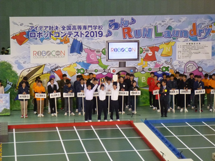 令和元年10月27日(日)、山陽小野田市民体育館において、アイデア対決・全国高等専門学校ロボットコンテスト2019中国地区大会が開催されました。本校Aチームは、決勝トーナメントへ進出して4位に入賞し、アイデアや技術などでは、軽快で確実に動作する木製クローラを備えたロボットの機能・デザインなどが評価され、「デザイン賞」と「特別賞(マブチモータ賞)」を受賞しました。