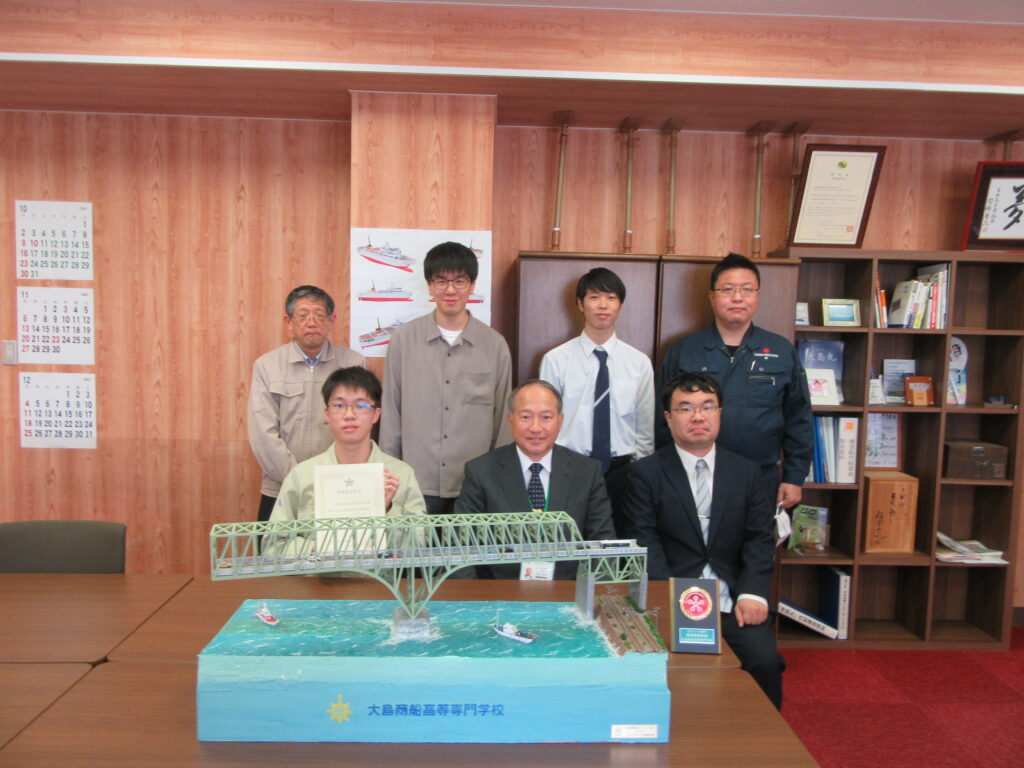 学生達による作品完成までの綿密な計画と図面の作成、それを基に技術職員によって行われたレーザー加工機による加工、大島大橋とその周辺の様子を表すための色彩等に工夫を凝らし、皆で連携して作品を作り上げたことが、この賞の受賞に結びつきました。
