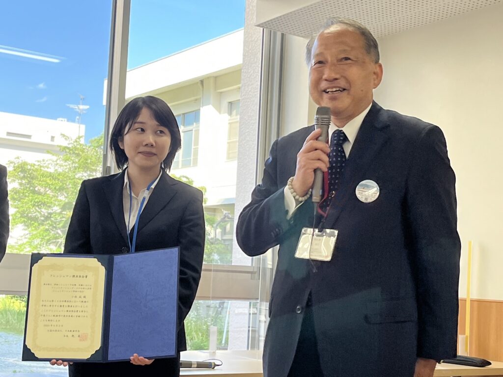 フレッシュマン講演奨励賞は、発表構成やスライド、そして話し方などを審査され、最も優秀であった若手研究者に贈られる賞です。