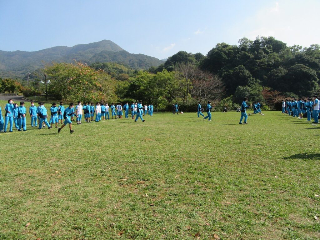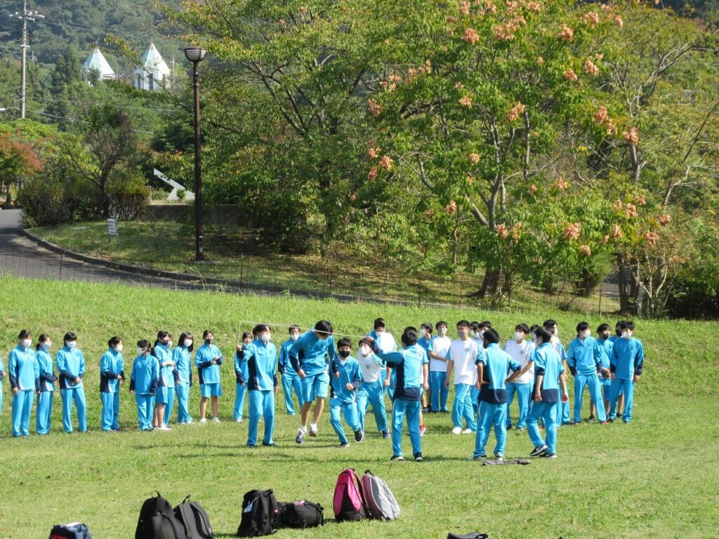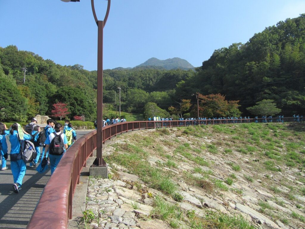 今年は新型コロナウイルス感染症防止対策のため様々な学校行事を断念していますが、1年生の「合宿研修」の代替行事として、10月29日に近隣の屋代ダム公園へハイキングに行きました。