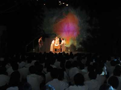 令和元年6月10日(月)、大島商船高等専門学校において、演劇集団「風」による命の尊さをテーマとした劇「ヘレン・ケラー ~ひびき合うものたち」の鑑賞会を開催しました。この行事は学生・教職員を対象として、命の尊さをテーマとした劇鑑賞を通じ、友愛・協調の精神を養い,命の尊さを考えることを目的とするもので、学生・教職員約700名が参加しました。