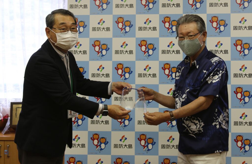 6月26日(金)に、周防大島町へ、本校にて作製したフェイスシールド100個を寄贈しました。