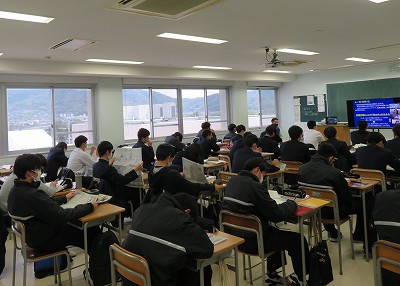令和3年11月22日(月)のLHRの時間を利用して、山陰中央新報社のNIE講座(新聞教室)を実施しました。3年生130名が就職活動に役立つ新聞活用術をオンラインで学びました。