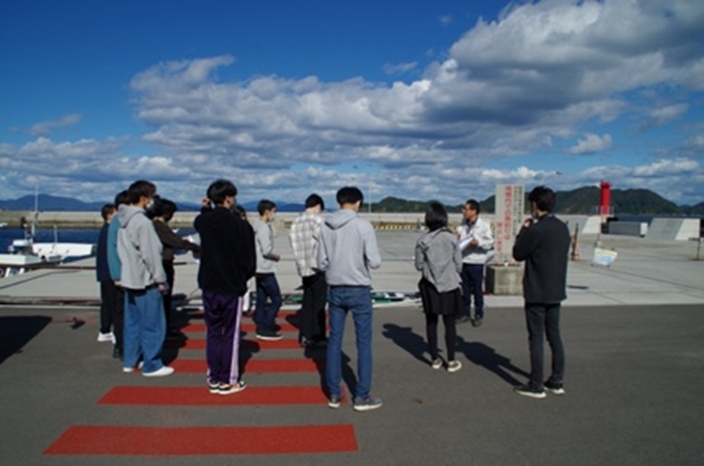 大島商船高等専門学校では、令和4年10月25日(火)に専攻科の創造工学演習「災害時の早期避難を促す仕組みづくり」の取り組みとして、周防大島町(屋代島)の災害地視察をバスにてめぐるフィールドワークを実施しました。