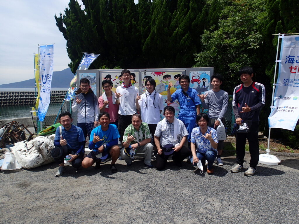 式典後には海岸の清掃を行い、クジラやカメの描かれた拾い箱にごみを集めました。