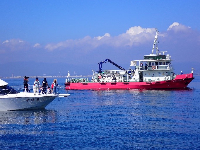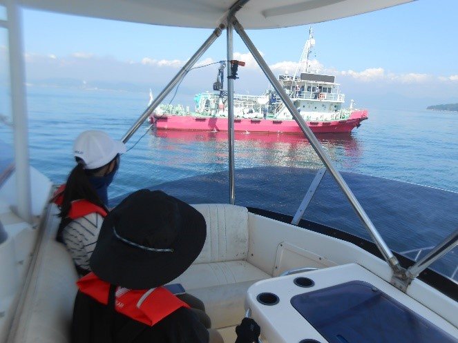 「すばる」と「おんど2000」 (中国地方整備局港湾業務艇「りゅうせい」より撮影)