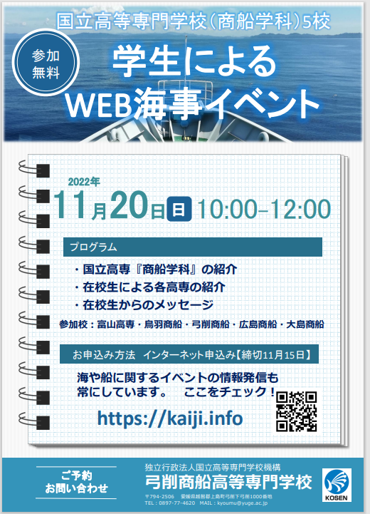 このたび、多くの小中学生に、海事・海洋の魅力を伝えるプロジェクトの一環として、商船系高専5校共同でWEBイベントを開催することとなりました。