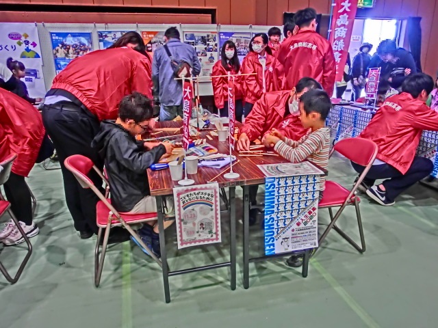 秋の収穫を感謝して開催される柳井の秋祭りが、11月23日(土)に開催され、本校も本イベントに参加し、柳井市体育館で、パネル展示や「スライムづくり」・「缶バッジづくり」・「不思議な振り子づくり」・「カレンダーづくり」の体験コーナーを用意しました。
