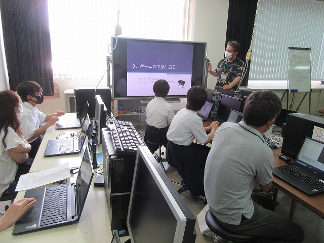 参加者の方々は事前に申し込んだ学科に応じたグループで半日コースと一日コースに分かれ、実験室見学やPC・ロボットなどを使った体験学習を行いました。