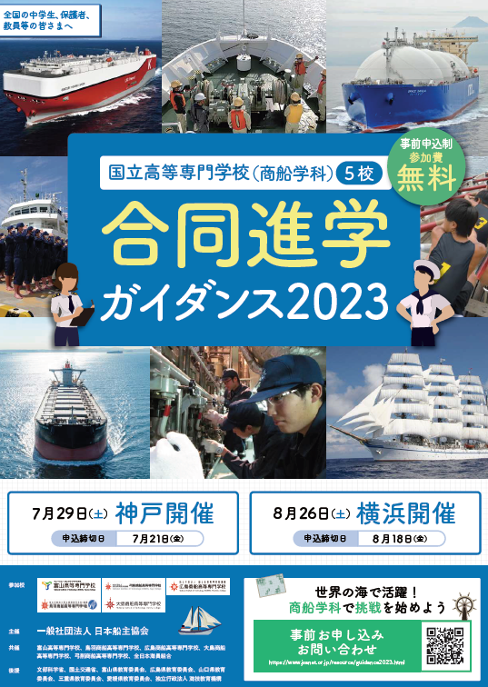 中学生や保護者の皆様を対象とする、「国立高等専門学校(商船学科)5校合同WEB進学ガイダンス」(主催:一般社団法人日本船主協会)に参加します。