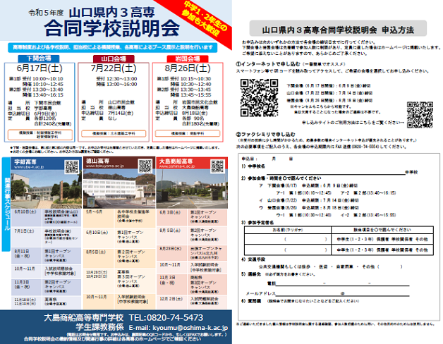 令和5年度山口県内3高専合同学校説明会