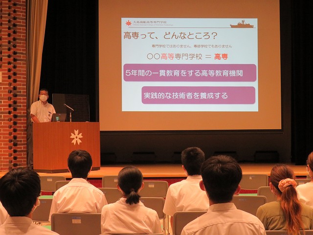 これは、中学生や保護者を対象とした説明会を、大島商船高専・徳山工業高専・宇部工業高専の県内3高専が合同で行っているものです。今回は本校の主催で開催し、中学生79名、保護者81名の計160名の方にお越しいただきました。