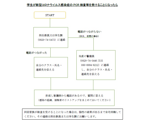 新型コロナウイルス感染症のPCR検査等(抗原検査含む)を受けることになった場合、学校への報告について、以下のとおりお知らせいたします。