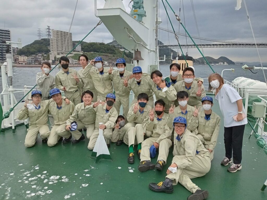 2022年10月4日から10月7日にかけて、商船学科3年生が関門港下関・北九州(戸畑)・徳山下松港への航海実習を行いました。下関では三菱造船株式会社下関造船所で新大島丸の建造状況を見学しました。
