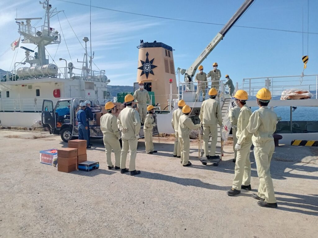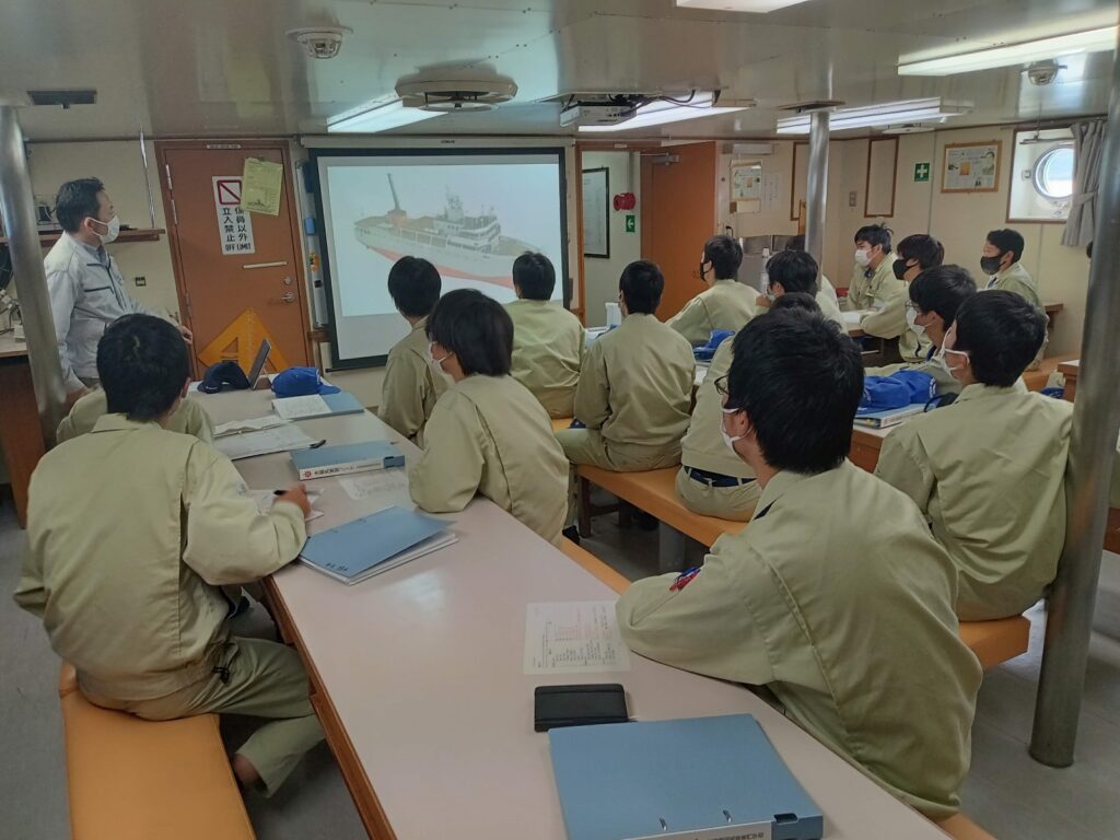 2022年10月27日から10月28日の2日間、商船学科1年生の航海実習を行いました。停泊地である呉港寄港後には、大和ミュージアムの見学を行いました。前期はコロナ禍により停泊ができなかったため、はじめての宿泊を伴う実習でしたが、現大島丸としては最後の宿泊実習になりました。帰路では周防大島町久賀港に立ち寄り、代船大島丸へ移設する物品を降ろしました。