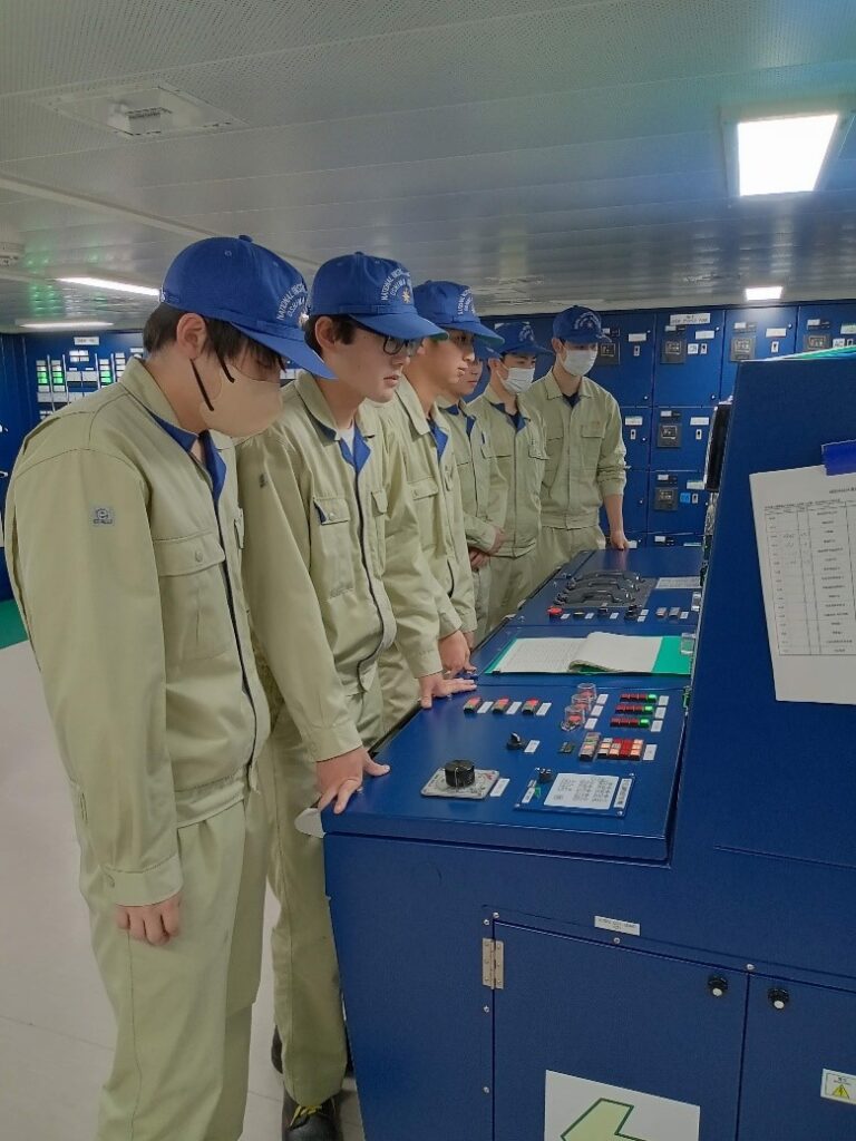 2023年4月12日から4月14日にかけて、商船学科5年生が丸亀港・高松港への航海実習を行いました。新大島丸が就航して、初めての航海実習です。新装なった設備に加え、2倍以上に拡大された船橋や機関制御室では余裕を持って実習が行えるため、学生から感嘆の声があがっていました。電気推進船のメリットを十分に活かした静粛性の高い船内では、実習密度を高め腕に磨きをかけていました。
