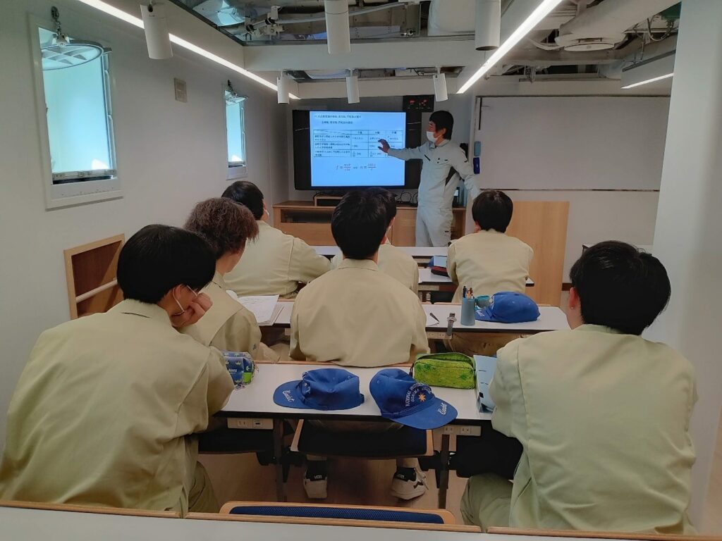 学生ホールにて、機関コース講義