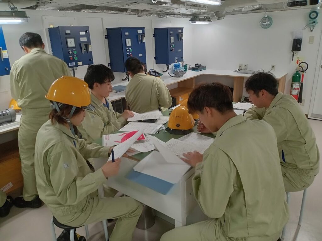 電気工作室において、課題に取り組んでいる様子(機関コース学生)