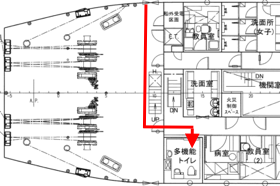 例えば多機能トイレや病室を船内入口付近に備えて、船内に多い段差を無くしてスムーズな移動ができるように工夫した。