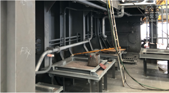 この部分は天井がないブロックなので、正転状態ではあるが、既に機器が搭載される補機台や各種パイプが設置されているのがわかるだろう。