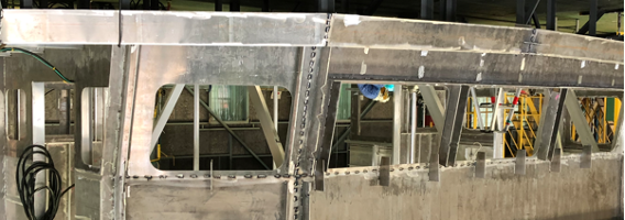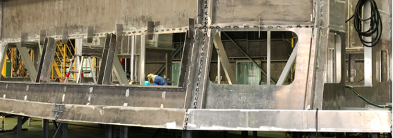 船底の上にフレーム構造を造るより、施工が効率的になるからね。