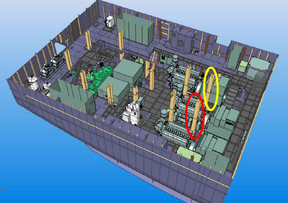 主機がなくなって主発電機になったから、機器そのものの大きさは小さくなっているけど、それよりもエンジンルームの容積が大きくなったから、そう見えるのだろうね。