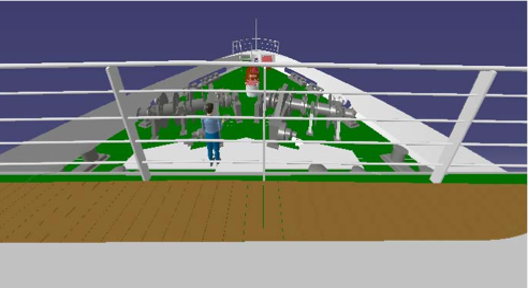 前々回ブリッジから船首甲板を見たCGでは、手前のデッキが茶色で再現されていました。
