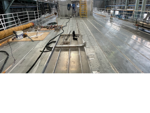 この甲板全面に木材が敷き詰められると壮観だろうね。