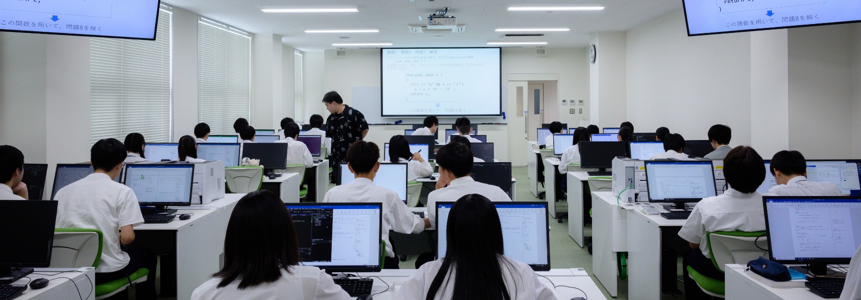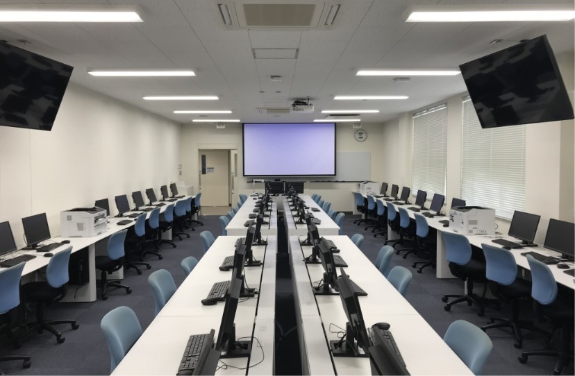 演習室の端末には、製図用のCAD(Computer Aided Design)ソフトウェア、画像処理や動画編集用ソフトウェア、各種プログラミング言語の開発環境(C言語、Python、Javaなど)などエンジニアリング教育に必要なソフトウェアが整えられ、学生が自由に利用できるようになっています。