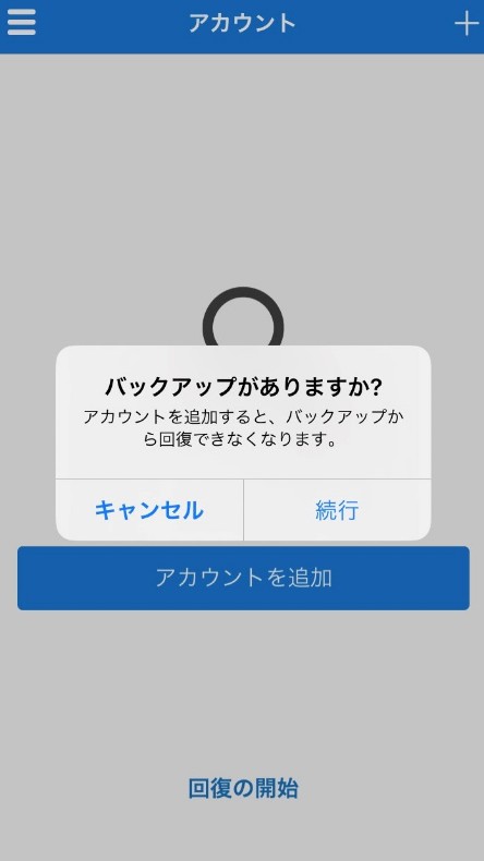iOS端末では以下の画面が表示されますので[続行]をタップしてください。