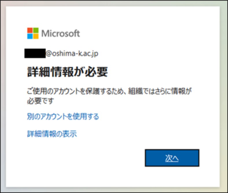 - 以下の画面が表示されるので、[次へ]をクリックします。