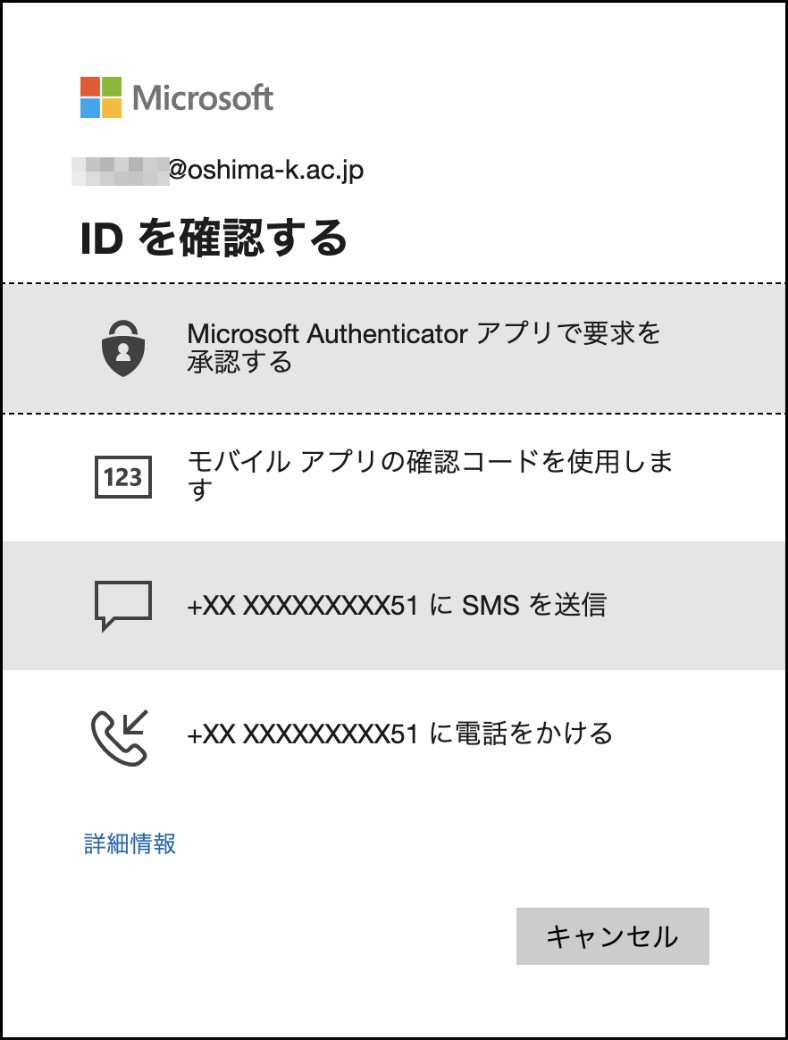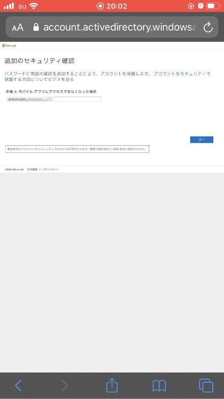 - 以下の画面が表示されるので、[認証用電話]を選択してください。