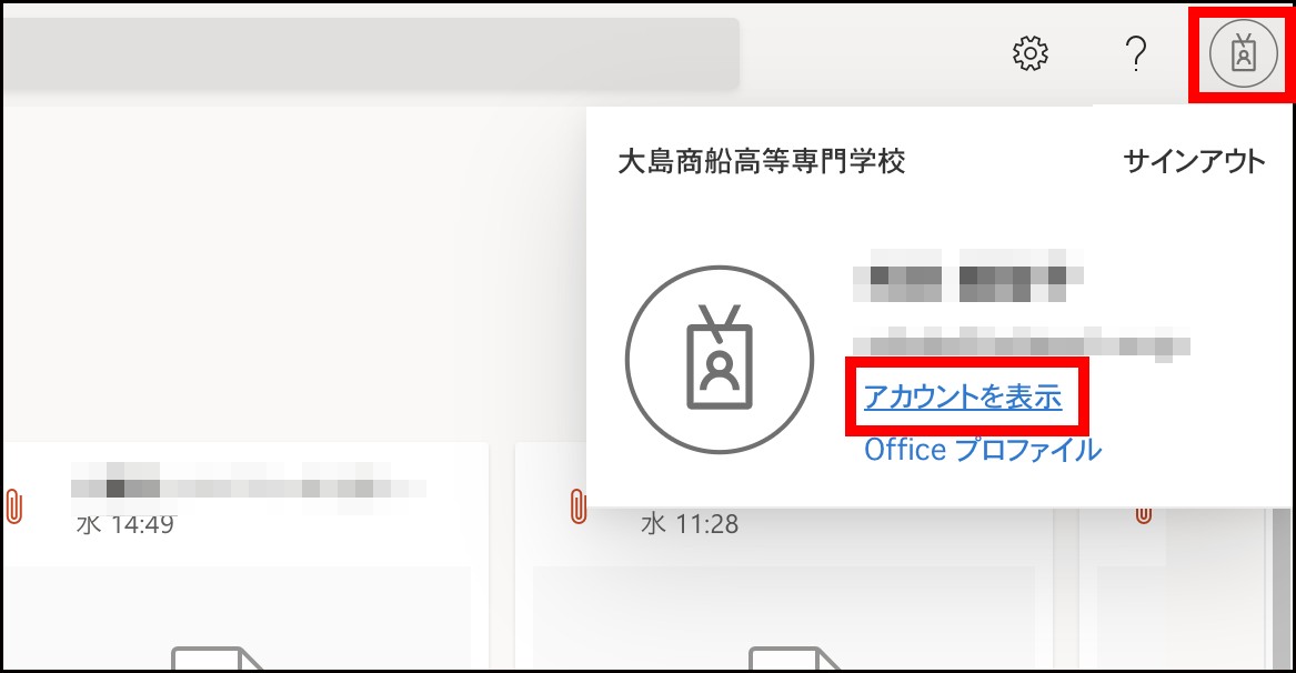 6. ログイン後の画面右上のアイコンをクリックし、[アカウントを表示]をクリックします。