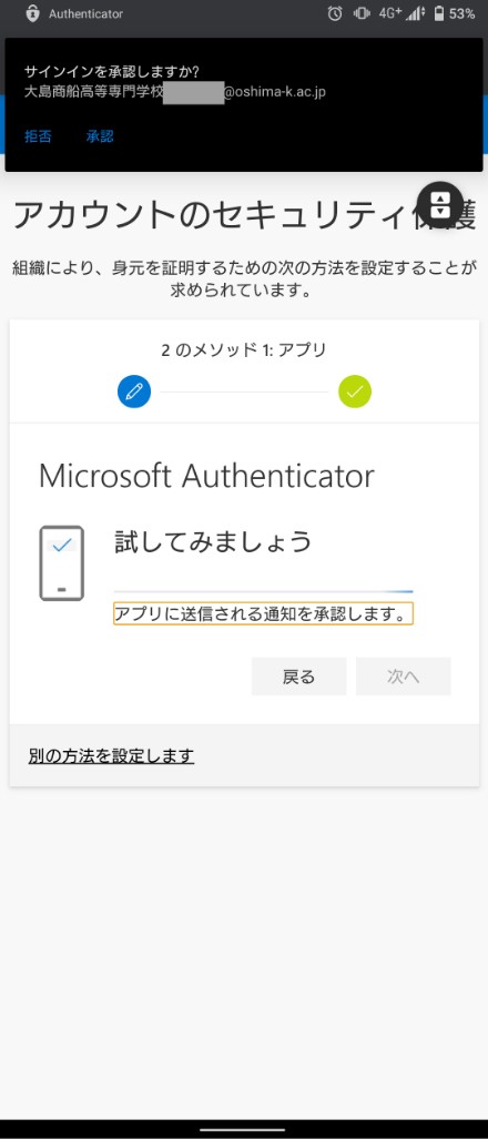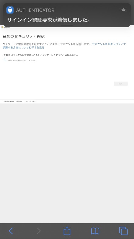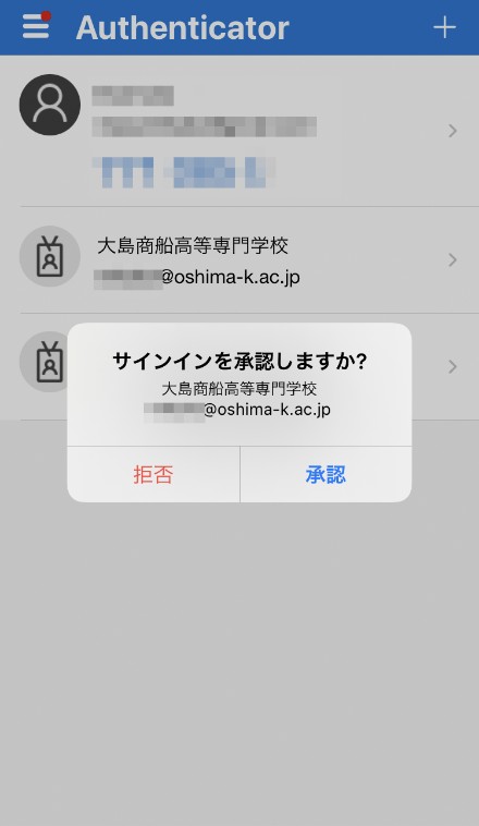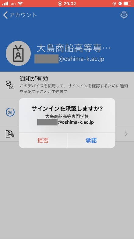 6. Microsoft Authenticatorアプリに通知が届くので[承認]をタップします。