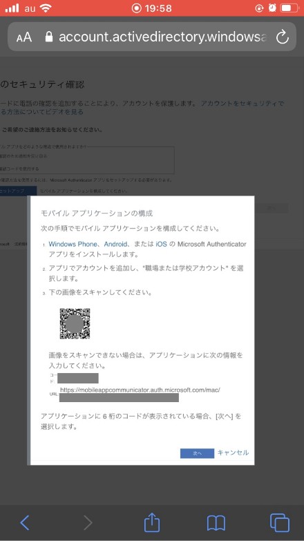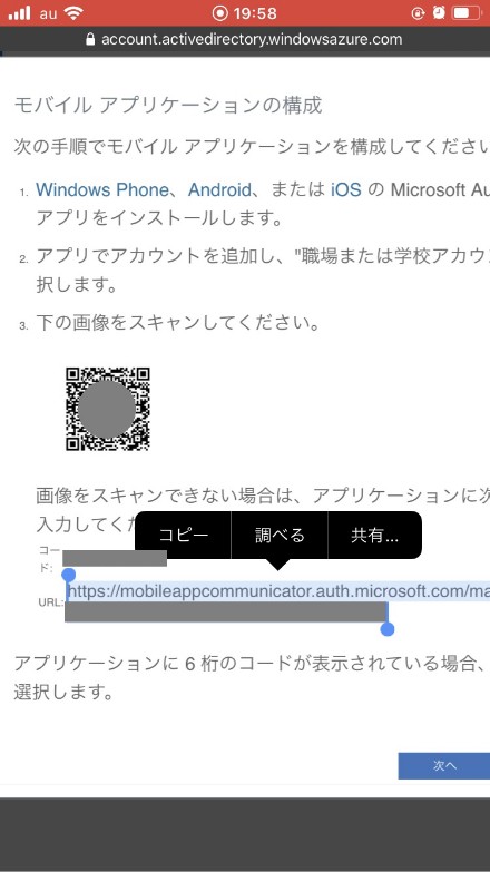 Microsoft Authenticatorアプリの手順7以降を、以下の手順に置き換えて実施してください。