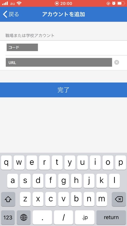 4. 先程メモしたコードを入力、URLをペーストし、[完了]をタップします。