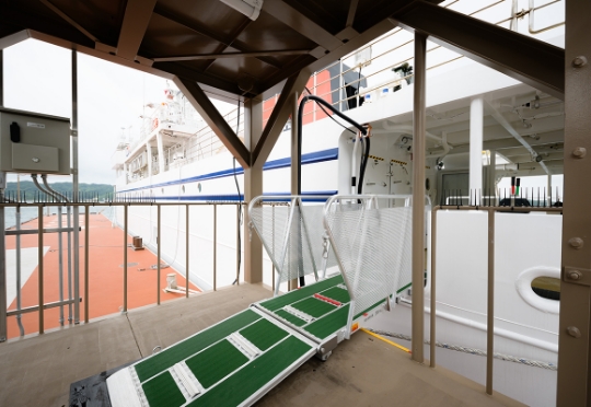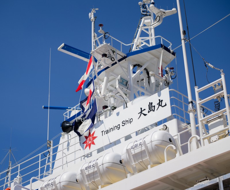 みなさん、こんにちは!2023年3月に誕生した大島丸です。大島商船高等専門学校と同じ、山口県にある三菱造船所で建造されました。