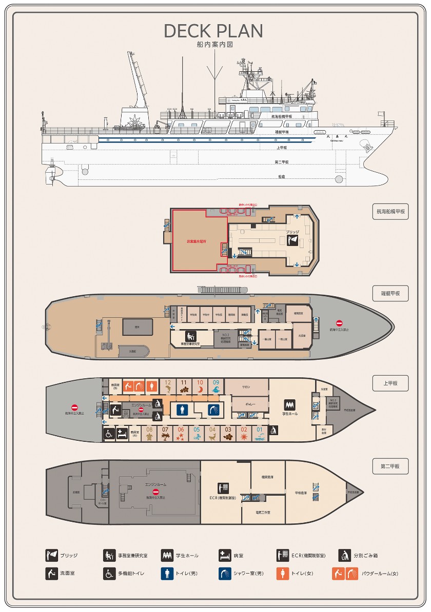 船内は、船員になるための教育環境が整っていて、「安全」と「効率」をバランスよく学べるようになっています。