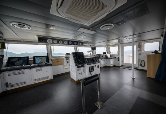 目がぱっちりしていて(窓面積が広い)、安全運航に最も必要な「見張り」が行いやすいようになっています。心臓(主機)には電気推進システムが採用されているため、とても静かで効率良く走ることができます。